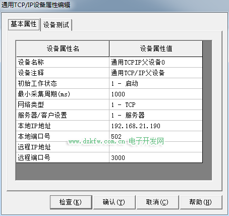 在設(shè)備窗口中添加通用TCPIP父設(shè)備,然后在該父設(shè)備下面添加一個modbusTCPIP數(shù)據(jù)轉(zhuǎn)發(fā)設(shè)備驅(qū)動。