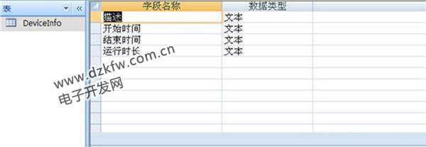 使用ACCESS數(shù)據(jù)庫,建立數(shù)據(jù)庫表,命名“DeviceInfo”。