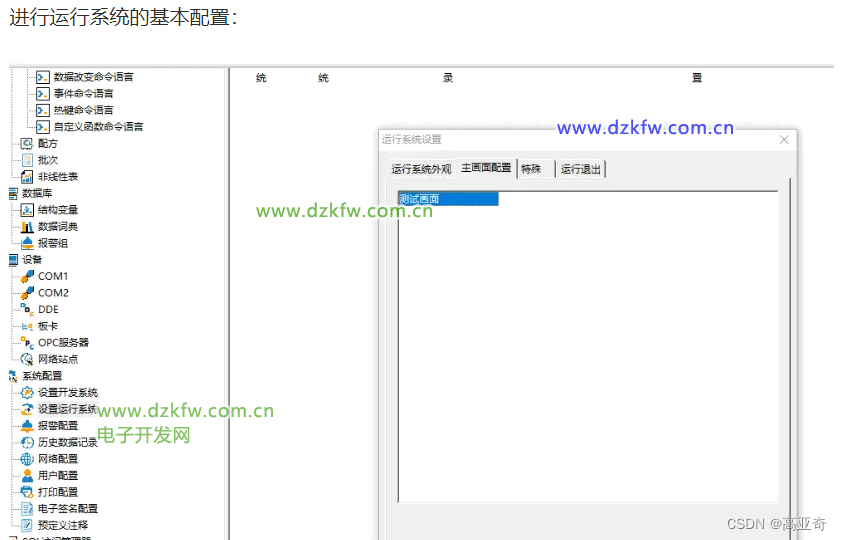 工程瀏覽器:一個工程開發設計工具,用于創建監控畫面、監控設備及相關變量、動畫鏈接、命令語言以及設定運行系統配置等的系統組態工具。