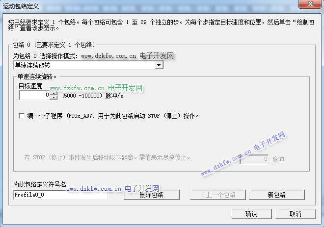 該界面要求設定操作模式、1個步的目標速度、結束位置等步的指標,以及定義這一包絡的符號名。(從第0個包絡第0步開始)。在操作模式選項中選擇相對位置控制,填寫包絡“0”中數據目標速度“60000”,結束位置“85600”,點擊“繪制包絡”,如圖9所示,注意,這個包絡只有1步。包絡的符號名按默認定義。這樣,第0個包絡的設置,即從供料站→加工站的運動包絡設置就完成了。現在可以設置下一個包絡。