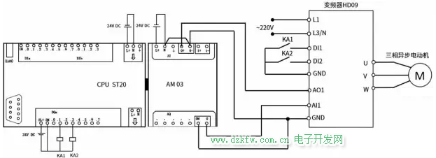 關于接線部分(參考圖 3),AO1 和 GND 端子承擔著模擬量控制變頻器的關鍵作用,通過這兩個端子傳輸的模擬信號,能夠精準調節變頻器的運行參數。