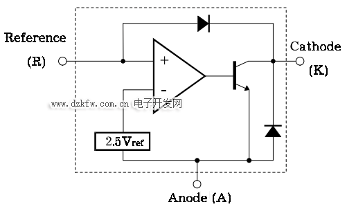 431系列基準穩壓源的符號多如圖1所示,看起來像穩壓二極管,但別穩壓二極管的符號多了一個參考端R。