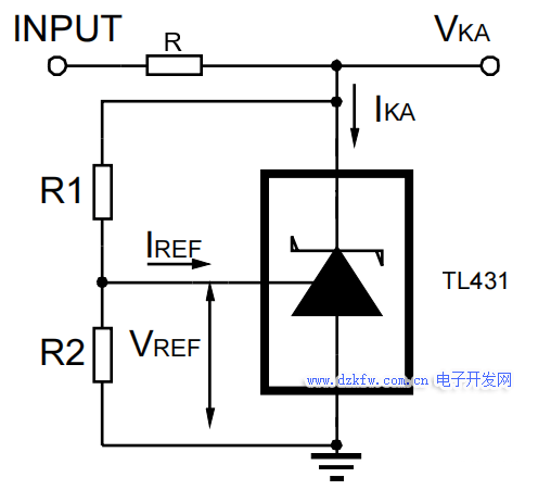 查看手冊可知,Iref最大為4uA,實際VKA便多了一項Iref*R1,mV級別(4uA*10KΩ=40mV)的電壓。