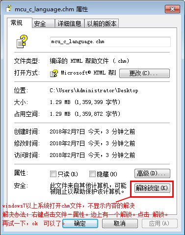 部分網(wǎng)友反映網(wǎng)站下載的hm的文件,打是打開后,只有目錄,右側(cè)不顯示內(nèi)容。解決辦法: 右鍵點(diǎn)擊文件–屬性 看到 最下面有一個(gè)提示 說是這個(gè)文件是來自其他計(jì)算機(jī)的, 邊上有一個(gè)解鎖。點(diǎn)擊 解鎖。再試一下,ok 可以了。
