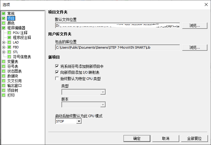 下載好后,將其放在一個指定的文件夾中。然后打開STEP 7-Micro/WIN SMART ,單擊【工具】菜單的【選項】按鈕,在彈出的對話框中,單擊【項目】,你會看到一個用戶庫文件夾路徑的設置,其默認路徑如下圖: