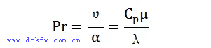 普朗特?cái)?shù)是表示流體中能量和動(dòng)量遷移過(guò)程相互影響的無(wú)因次組合數(shù),表明溫度邊界層和流動(dòng)邊界層的關(guān)系,反映流體物理性質(zhì)對(duì)對(duì)流傳熱過(guò)程的影響,其表達(dá)式: