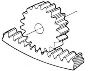 與正齒輪嚙合的直線齒條狀齒輪。可以看成是正齒輪的節圓直徑變成無限大時的特殊情況。