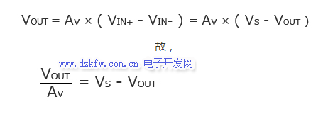 當運算放大器的開放增益Av足夠大時,可視為左邊近似于0、Vs=VOUT。