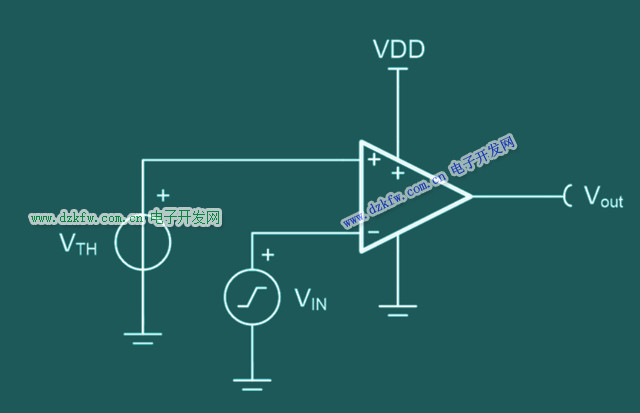 運放最簡單的應(yīng)用,就是作為比較器。由于運放的放大倍數(shù)很大,一般來說都會接上反饋來使用。但是,作為比較器時,可以不用接反饋,電路也相應(yīng)簡單: