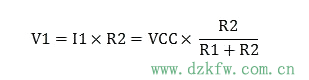 通過歐姆定律可以計算出每個電阻兩端的電壓。在R1和R2這兩個橋臂上,R1,R2將VCC電壓分壓,R2電阻兩端得到的電壓即為V1;在R3和Rx這個橋臂上,R3,Rx將VCC電壓分壓,R3電阻兩端得到的電壓即為V2。下面分別用歐姆定律計算V1和V2。